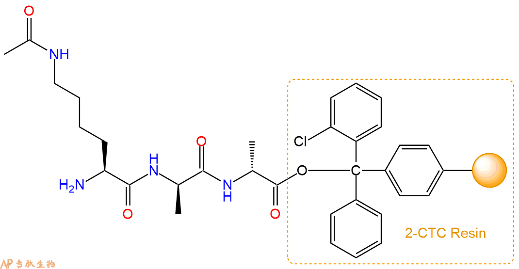 最后再经过步骤二得到 H2N-Lys(Ac)-DAla-DAla-CTC Resin,结构如下: