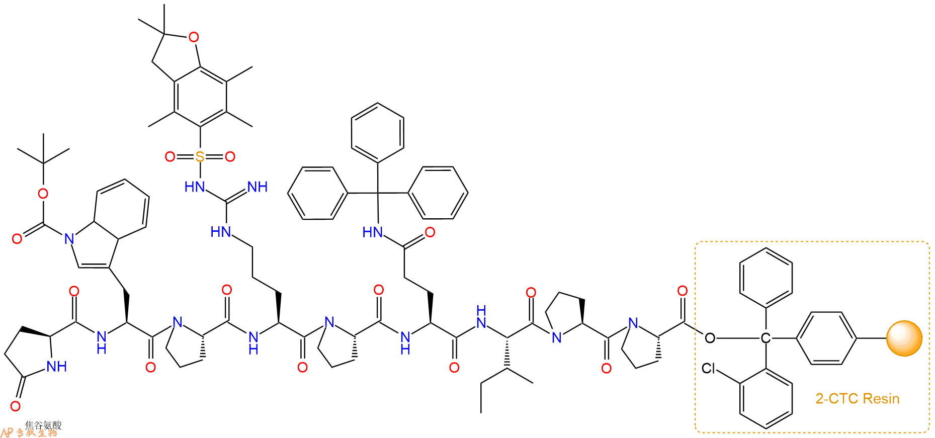 H2N-Arg(Pbf)-Pro-Gln(Trt)-Ile-Pro-Pro-CTC Resin