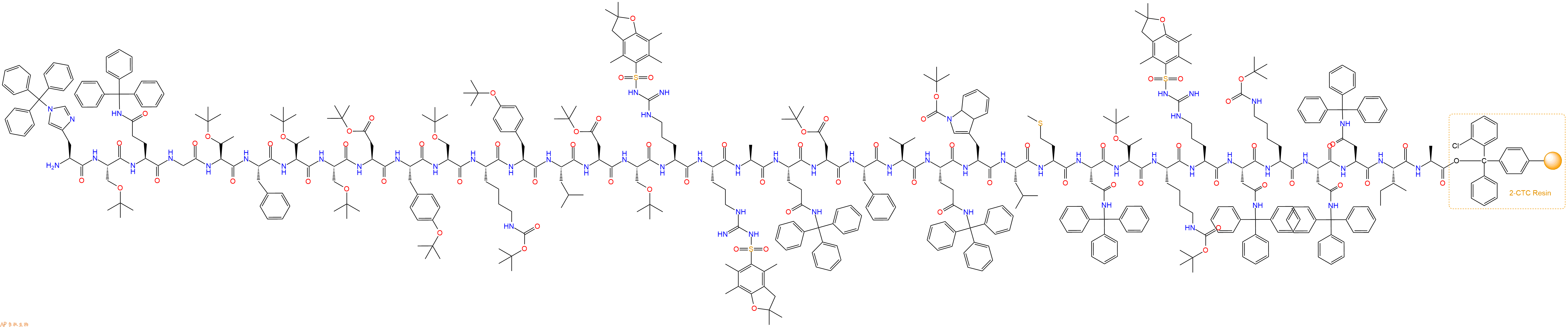 Fmoc-Ser(tBu)-Arg(Pbf)-Arg(Pbf)-Ala-Gln(Trt)-Asp(OtBu)-Phe-Val-Gln(Trt)-Trp(Boc)-Leu-Met-Asn(Trt)-Thr(tBu)-Lys(Boc)-Arg(Pbf)-Asn(Trt)-Lys(Boc)-Asn(Trt)-Asn(Trt)-Ile-Ala-CTC Resin