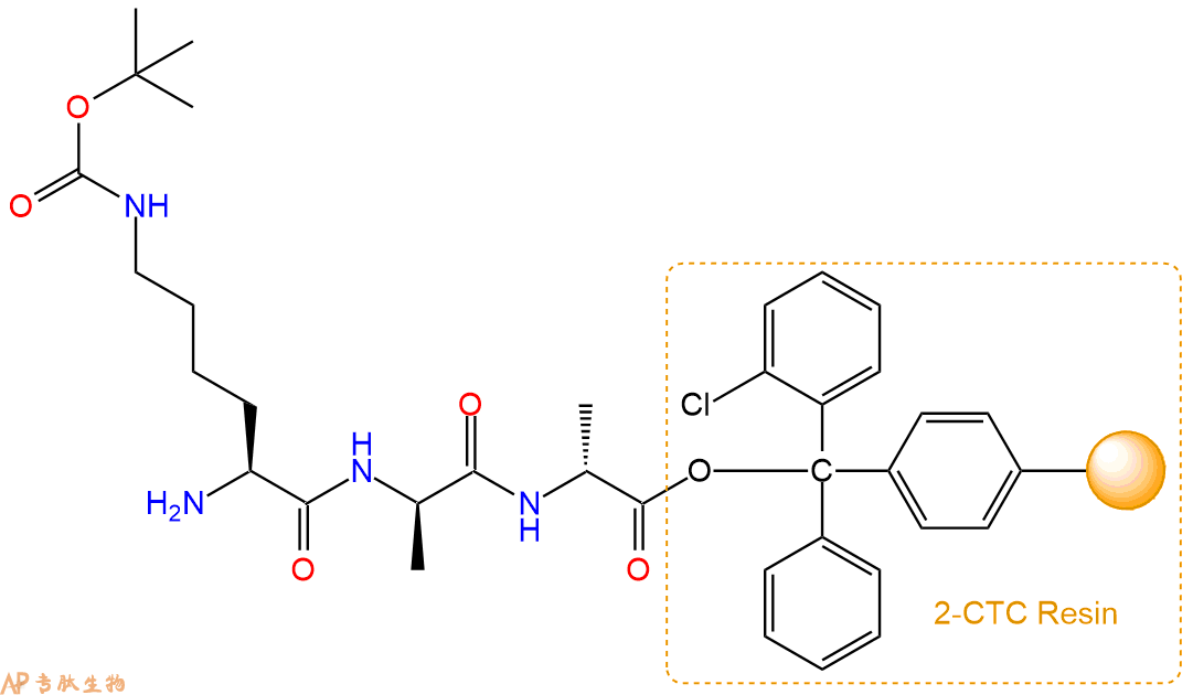 最后再经过步骤二得到 H2N-Lys(Boc)-DAla-DAla-CTC Resin,结构如下: