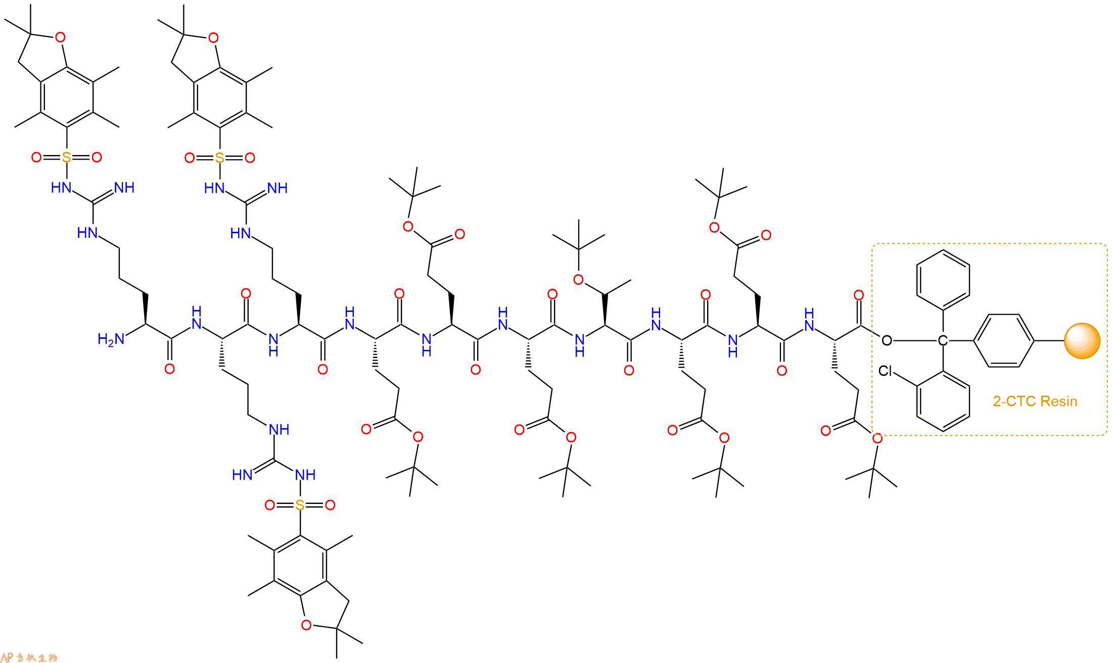 H2N-Arg(Pbf)-Arg(Pbf)-Glu(OtBu)-Glu(OtBu)-Glu(OtBu)-Thr(tBu)-Glu(OtBu)-Glu(OtBu)-Glu(OtBu)-CTC Resin