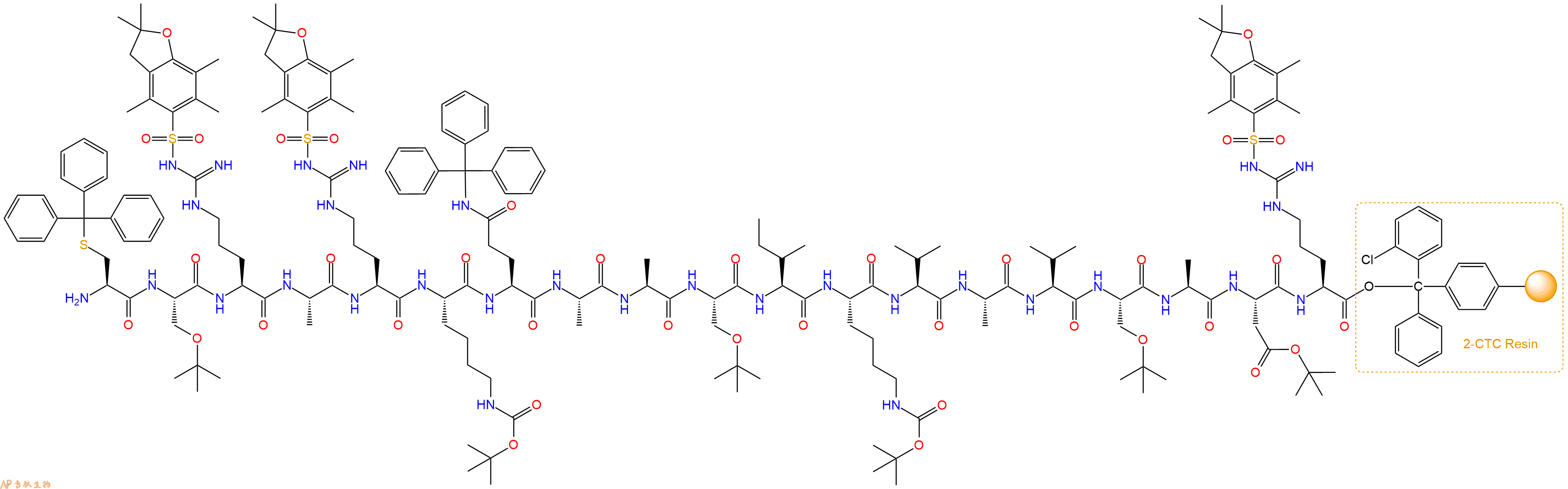 H2N-Ser(tBu)-Arg(Pbf)-Ala-Arg(Pbf)-Lys(Boc)-Gln(Trt)-Ala-Ala-Ser(tBu)-Ile-Lys(Boc)-Val-Ala-Val-Ser(tBu)-Ala-Asp(OtBu)-Arg(Pbf)-CTC Resin