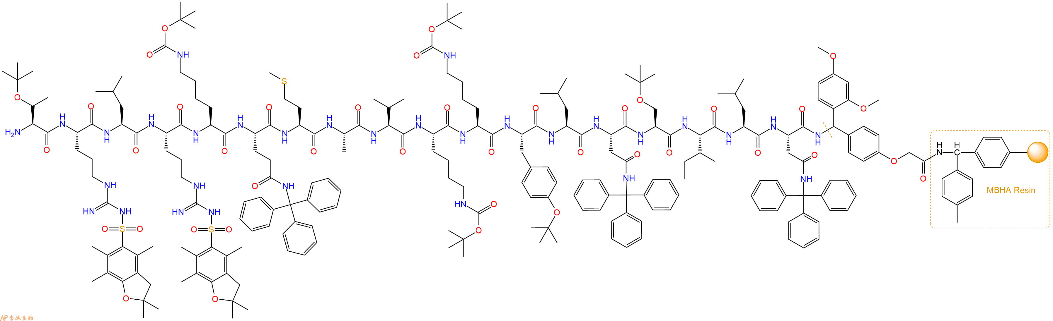 Fmoc-Leu-Arg(Pbf)-Lys(Boc)-Gln(Trt)-Met-Ala-Val-Lys(Boc)-Lys(Boc)-Tyr(tBu)-Leu-Asn(Trt)-Ser(tBu)-Ile-Leu-Asn(Trt)-Linker-MBHA Resin