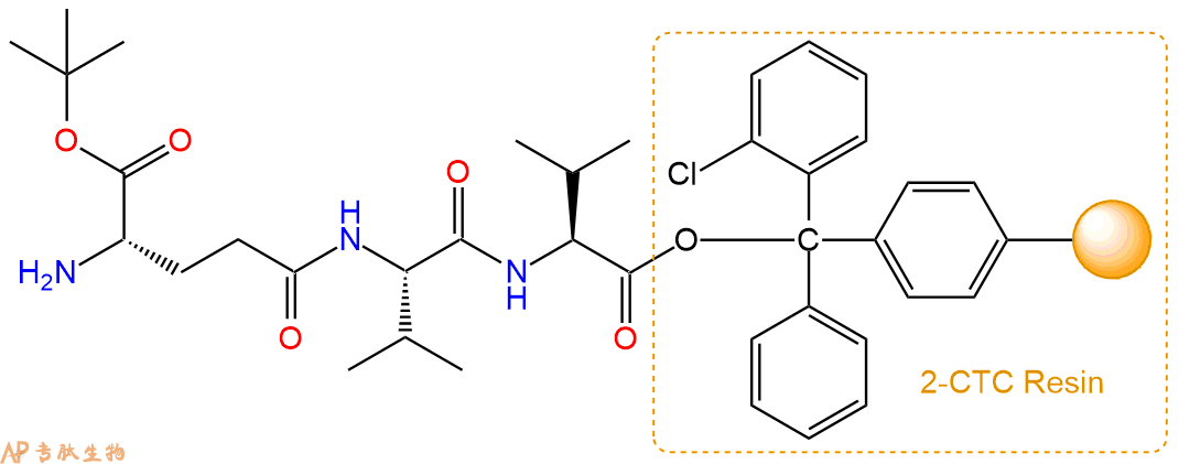 最后再经过步骤二得到 H2N-γGlu(OtBu)-Val-Val-CTC Resin,结构如下:
