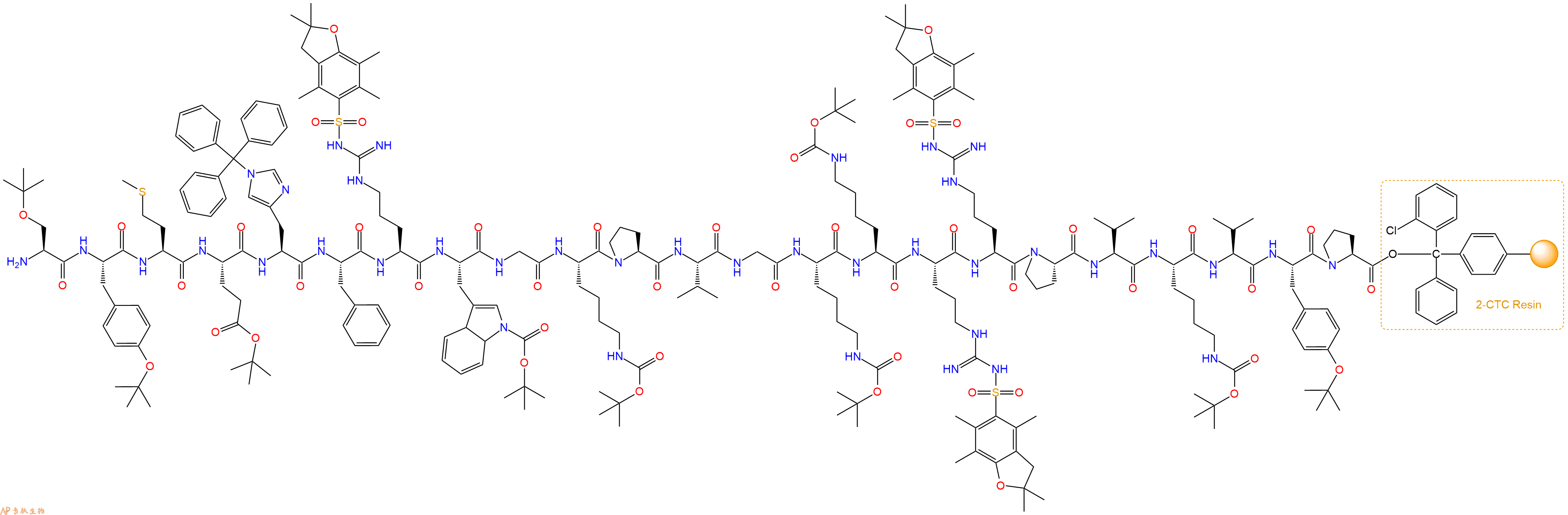H2N-Arg(Pbf)-Arg(Pbf)-Pro-Val-Lys(Boc)-Val-Tyr(tBu)-Pro-CTC Resin