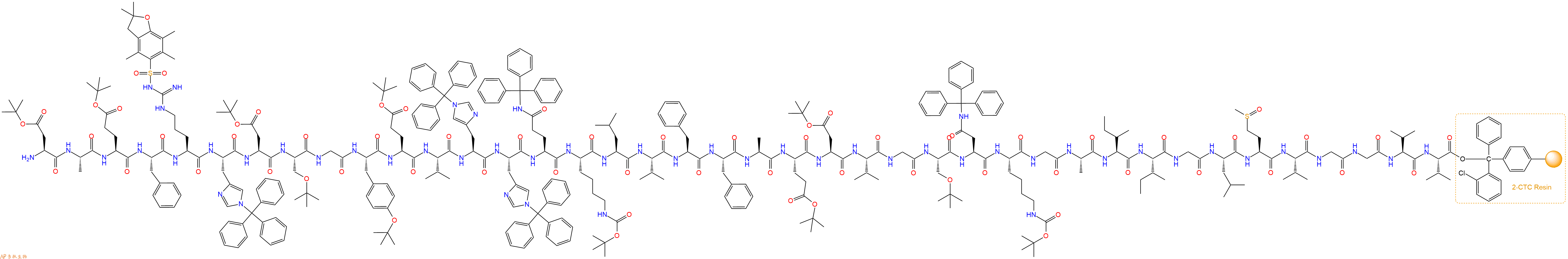 H2N-Ala-Glu(OtBu)-Phe-Arg(Pbf)-His(Trt)-Asp(OtBu)-Ser(tBu)-Gly-Tyr(tBu)-Glu(OtBu)-Val-His(Trt)-His(Trt)-Gln(Trt)-Lys(Boc)-Leu-Val-Phe-Phe-Ala-Glu(OtBu)-Asp(OtBu)-Val-Gly-Ser(tBu)-Asn(Trt)-Lys(Boc)-Gly-Ala-Ile-Ile-Gly-Leu-Met(O)-Val-Gly-Gly-Val-Val-CTC Resin
