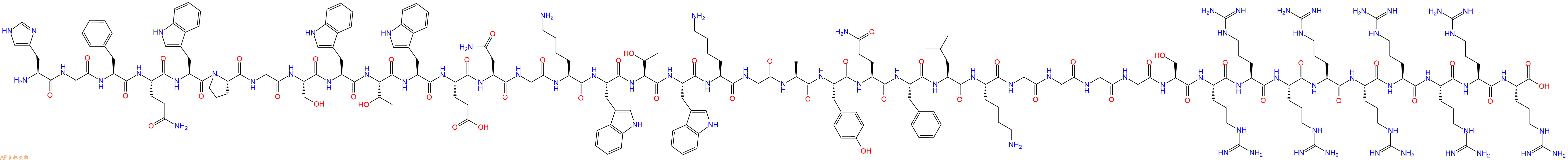 单字母:H2N-HGFQWPGSWTWENGKWTWKGAYQFLKGGGGSRRRRRRRRR-OH