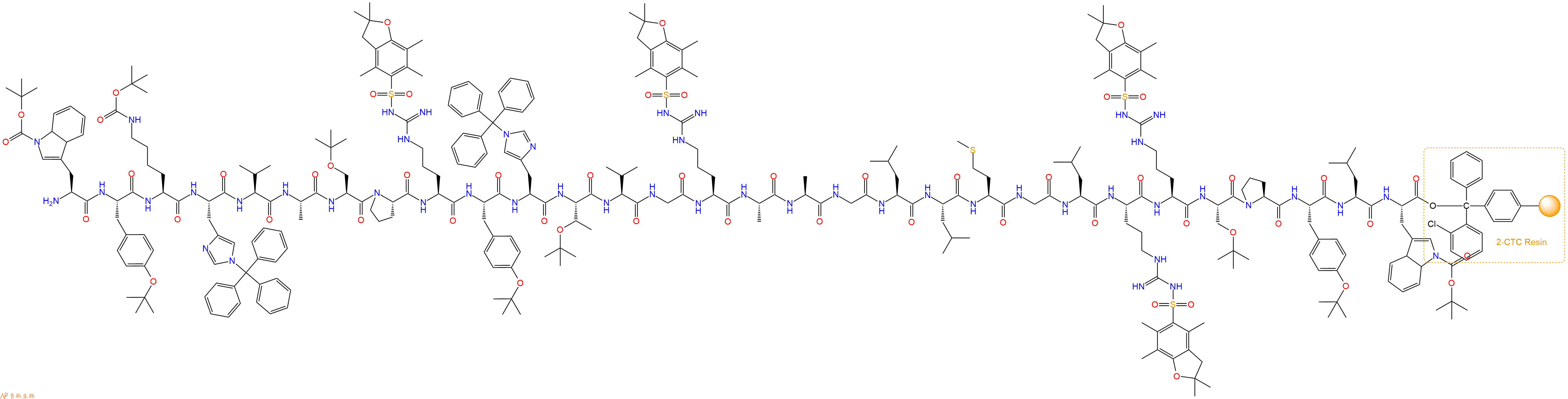 Fmoc-Lys(Boc)-His(Trt)-Val-Ala-Ser(tBu)-Pro-Arg(Pbf)-Tyr(tBu)-His(Trt)-Thr(tBu)-Val-Gly-Arg(Pbf)-Ala-Ala-Gly-Leu-Leu-Met-Gly-Leu-Arg(Pbf)-Arg(Pbf)-Ser(tBu)-Pro-Tyr(tBu)-Leu-Trp(Boc)-CTC Resin