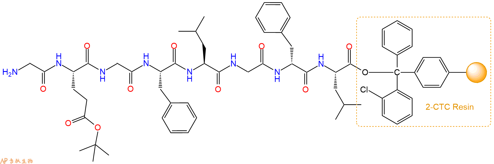 最后再经过步骤二得到 H2N-Gly-Glu(OtBu)-Gly-Phe-Leu-Gly-DPhe-Leu-CTC Resin,结构如下: