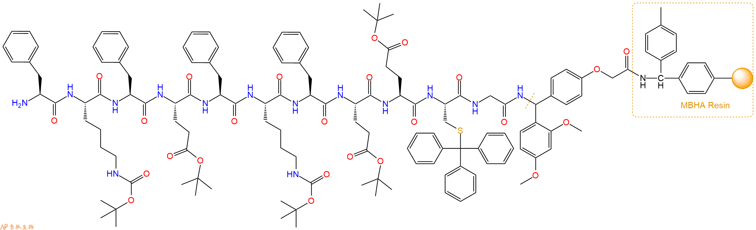 Fmoc-Phe-Glu(OtBu)-Phe-Lys(Boc)-Phe-Glu(OtBu)-Glu(OtBu)-Cys(Trt)-Gly-Linker-MBHA Resin