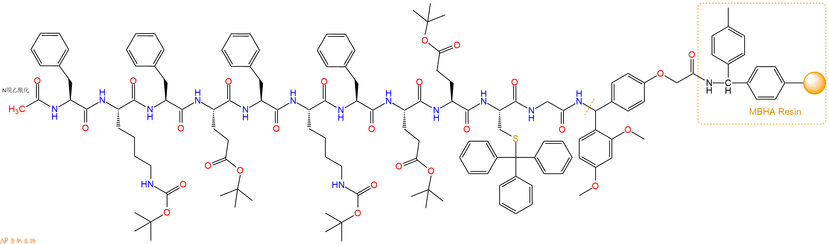 Fmoc-Phe-Lys(Boc)-Phe-Glu(OtBu)-Phe-Lys(Boc)-Phe-Glu(OtBu)-Glu(OtBu)-Cys(Trt)-Gly-Linker-MBHA Resin