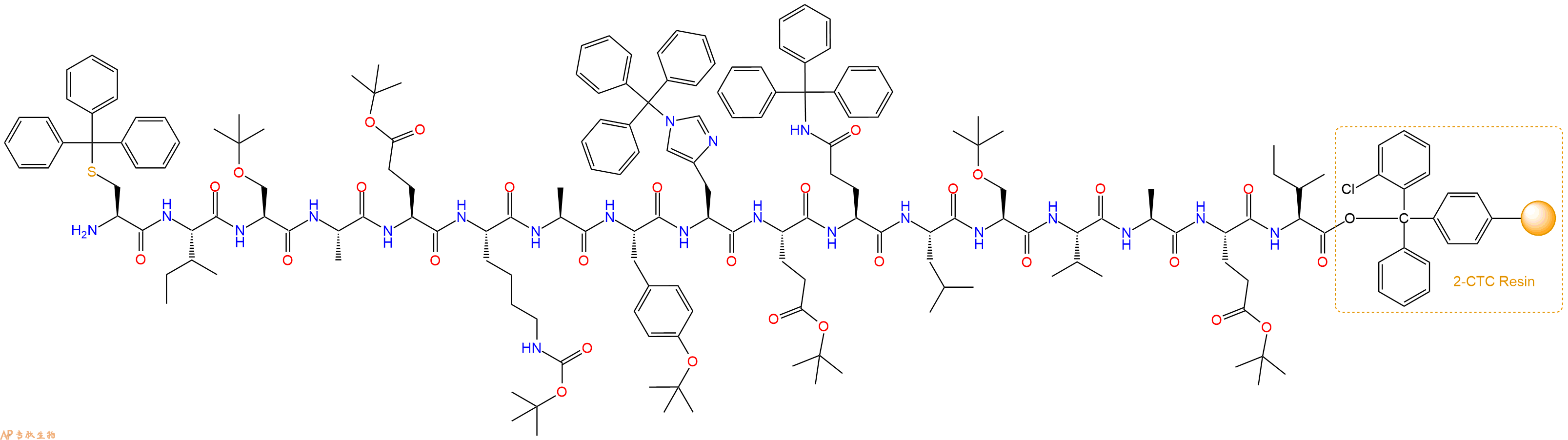 Fmoc-Lys(Boc)-Ala-Tyr(tBu)-His(Trt)-Glu(OtBu)-Gln(Trt)-Leu-Ser(tBu)-Val-Ala-Glu(OtBu)-Ile-CTC Resin