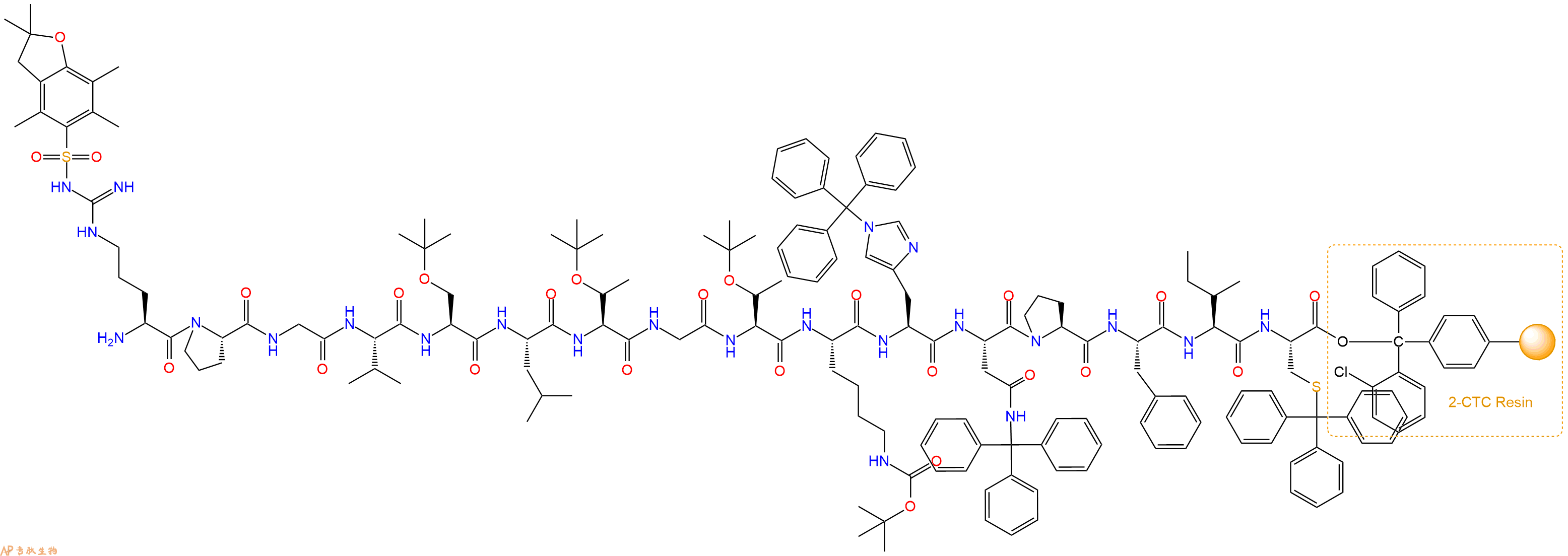 Fmoc-Arg(Pbf)-Pro-Gly-Val-Ser(tBu)-Leu-Thr(tBu)-Gly-Thr(tBu)-Lys(Boc)-His(Trt)-Asn(Trt)-Pro-Phe-Ile-Cys(Trt)-CTC Resin