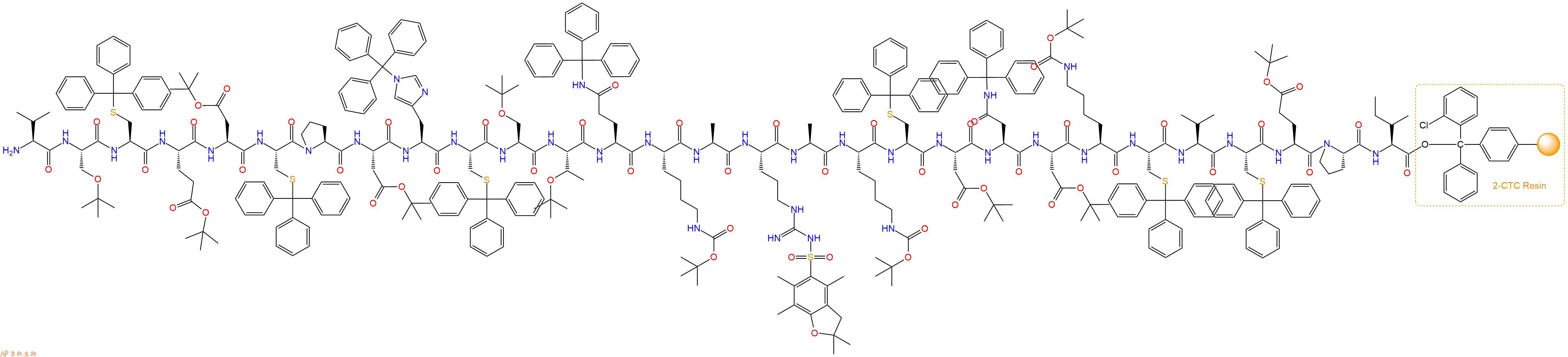 H2N-Cys(Trt)-Glu(OtBu)-Asp(OtBu)-Cys(Trt)-Pro-Asp(OtBu)-His(Trt)-Cys(Trt)-Ser(tBu)-Thr(tBu)-Gln(Trt)-Lys(Boc)-Ala-Arg(Pbf)-Ala-Lys(Boc)-Cys(Trt)-Asp(OtBu)-Asn(Trt)-Asp(OtBu)-Lys(Boc)-Cys(Trt)-Val-Cys(Trt)-Glu(OtBu)-Pro-Ile-CTC Resin