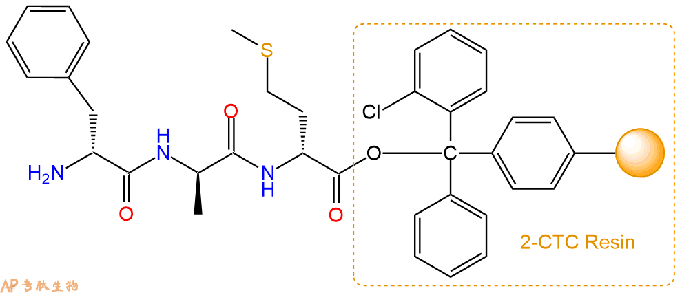 最后再经过步骤二得到 H2N-DPhe-DAla-DMet-CTC Resin,结构如下: