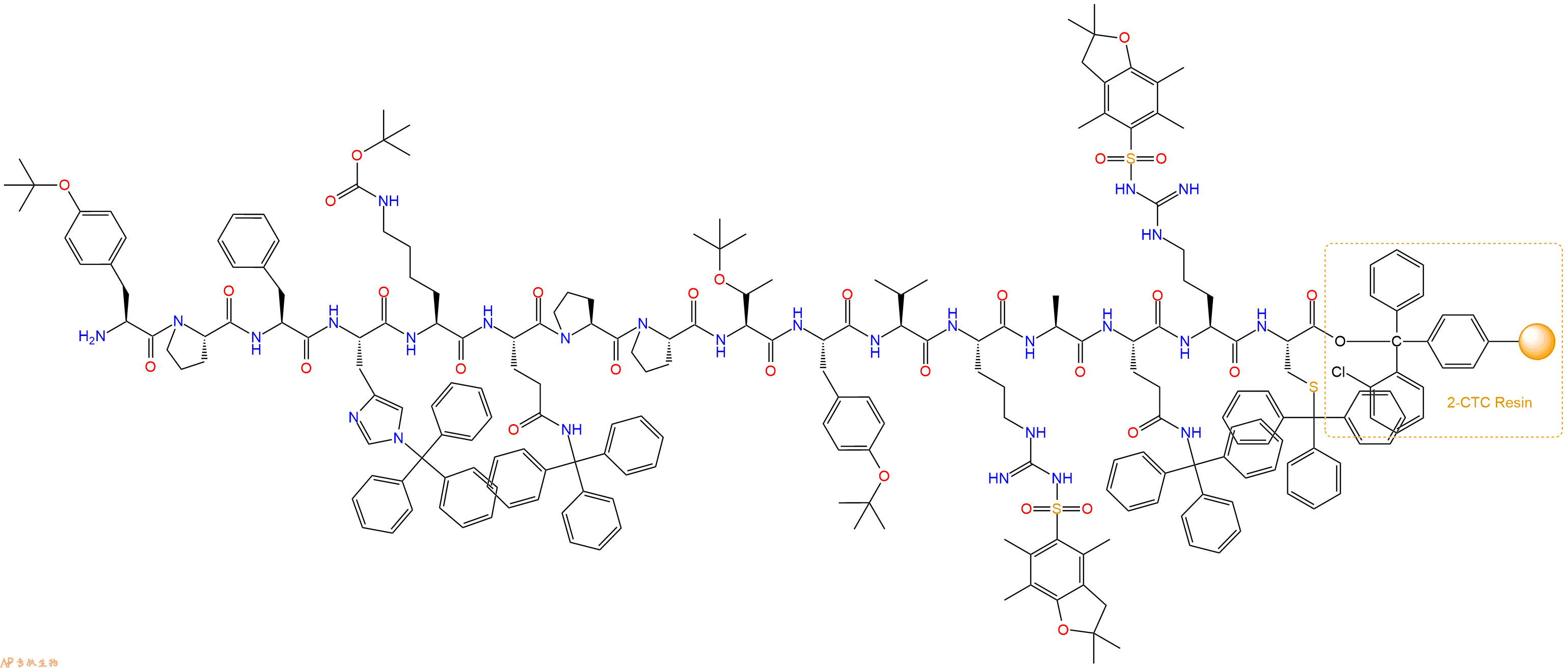 H2N-Phe-His(Trt)-Lys(Boc)-Gln(Trt)-Pro-Pro-Thr(tBu)-Tyr(tBu)-Val-Arg(Pbf)-Ala-Gln(Trt)-Arg(Pbf)-Cys(Trt)-CTC Resin