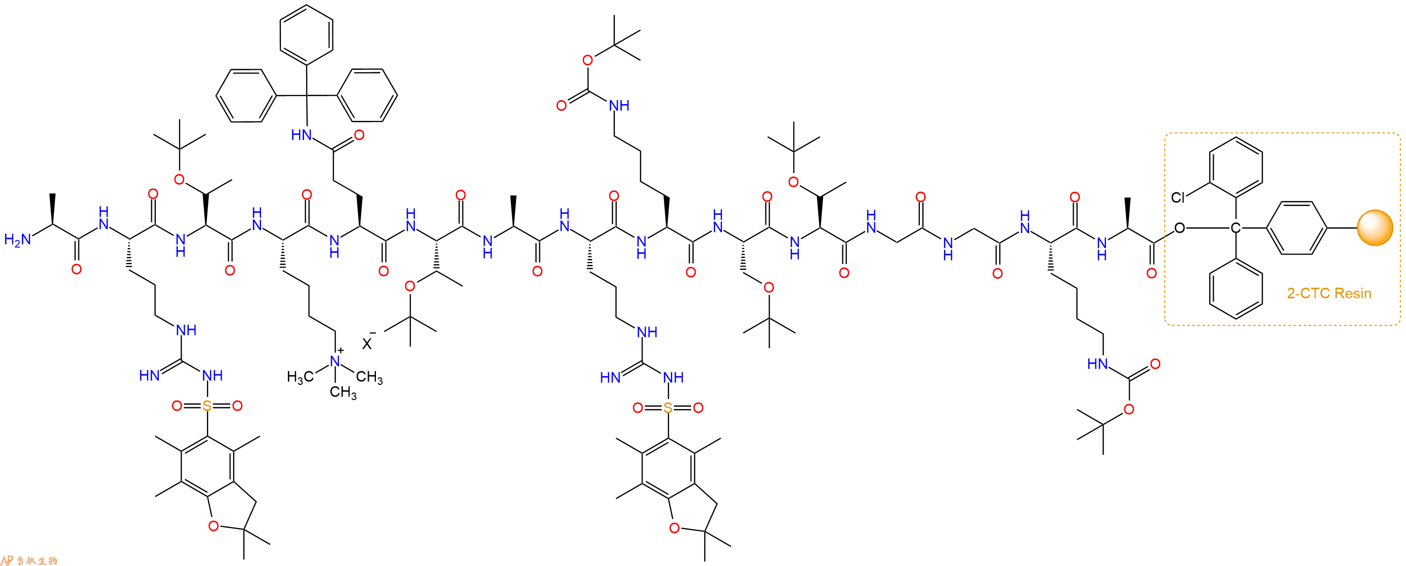 H2N-Arg(Pbf)-Thr(tBu)-Lys(Me)3-Gln(Trt)-Thr(tBu)-Ala-Arg(Pbf)-Lys(Boc)-Ser(tBu)-Thr(tBu)-Gly-Gly-Lys(Boc)-Ala-CTC Resin