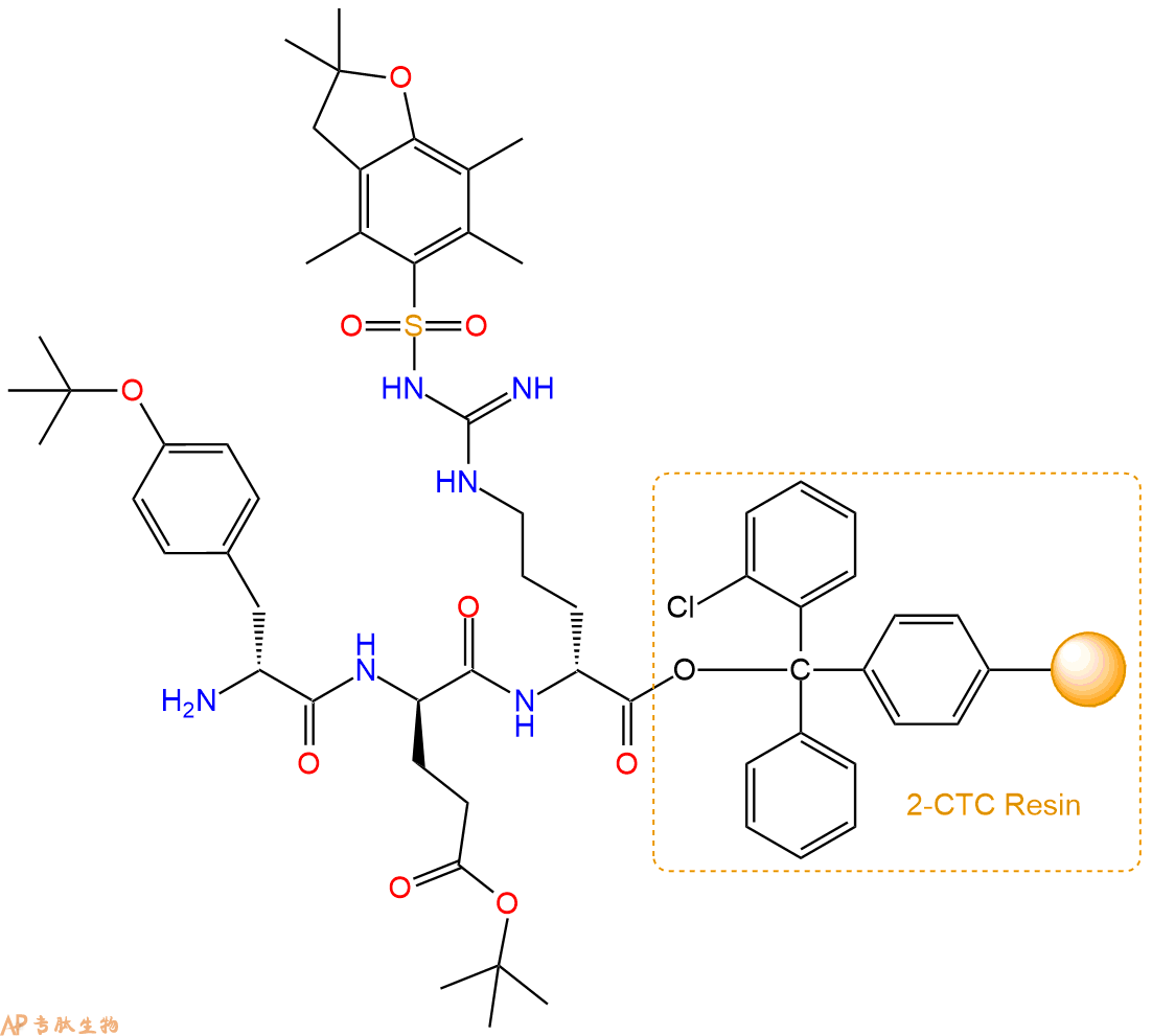 最后再经过步骤二得到 H2N-DTyr(tBu)-DGlu(OtBu)-DArg(Pbf)-CTC Resin,结构如下: