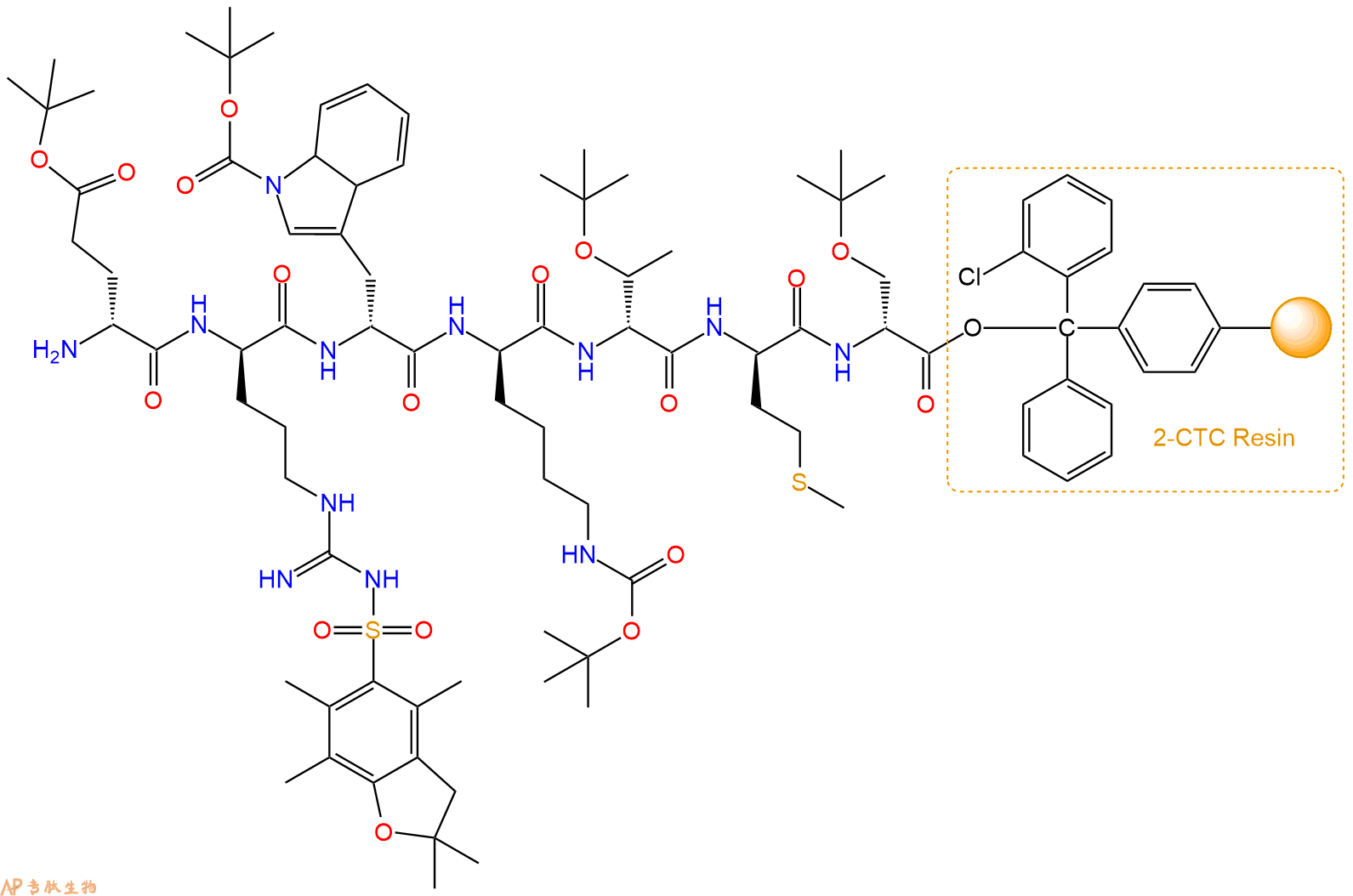 H2N-DArg(Pbf)-DTrp(Boc)-DLys(Boc)-DThr(tBu)-DMet-DSer(tBu)-CTC Resin