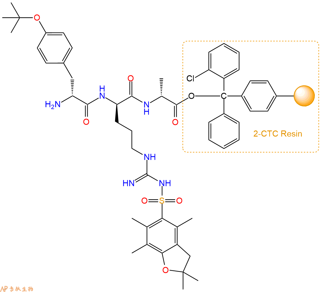最后再经过步骤二得到 H2N-DTyr(tBu)-DArg(Pbf)-DAla-CTC Resin,结构如下: