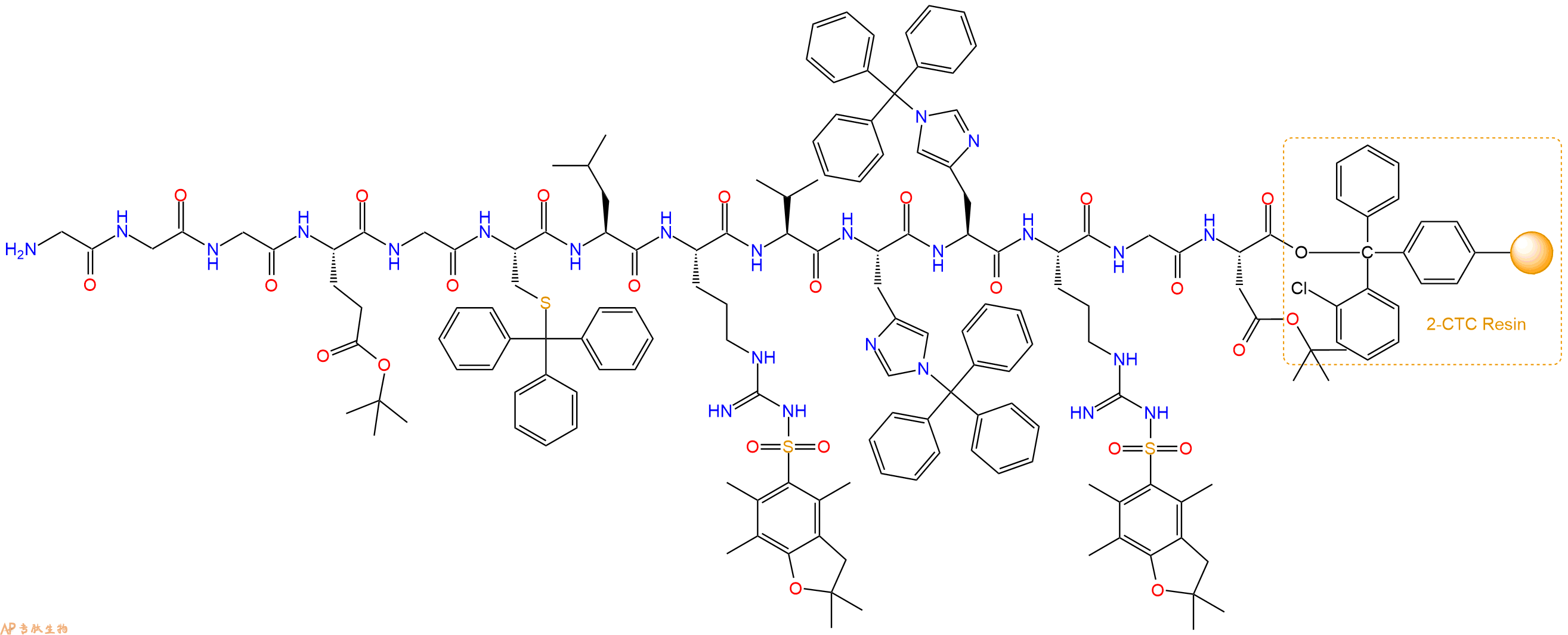 Fmoc-Gly-Gly-Gly-Glu(OtBu)-Gly-Cys(Trt)-Leu-Arg(Pbf)-Val-His(Trt)-His(Trt)-Arg(Pbf)-Gly-Asp(OtBu)-CTC Resin