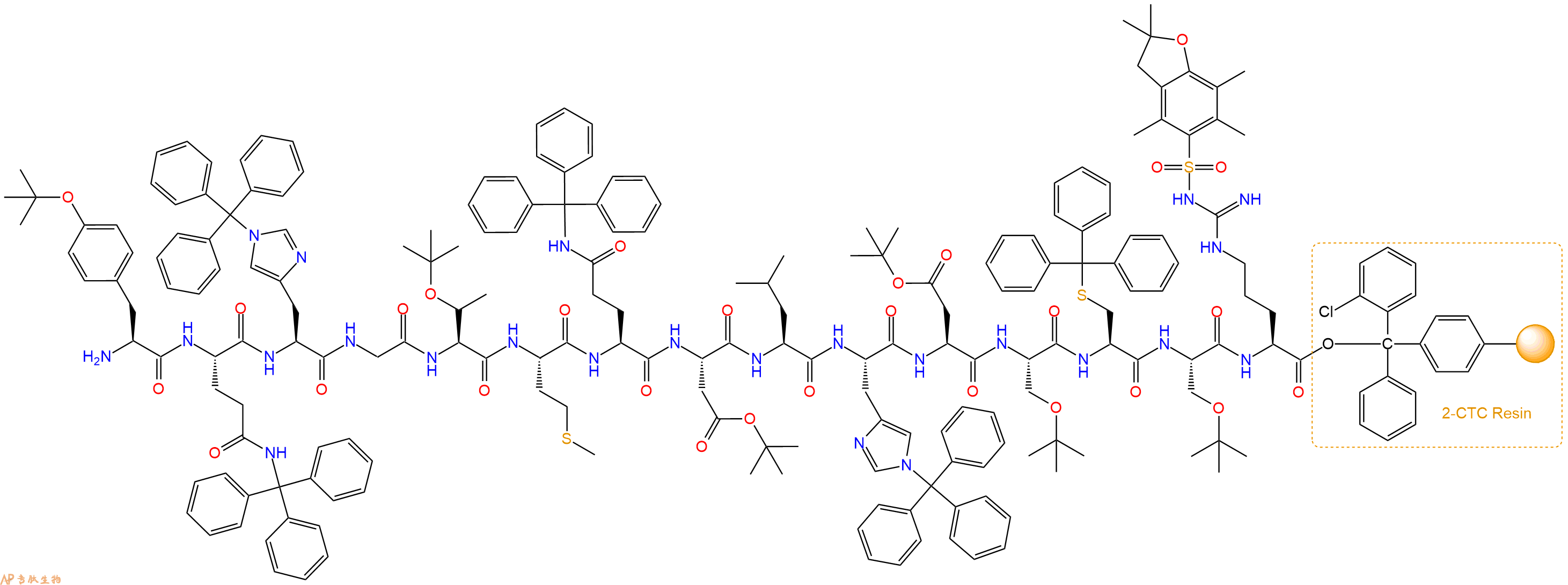 H2N-His(Trt)-Gly-Thr(tBu)-Met-Gln(Trt)-Asp(OtBu)-Leu-His(Trt)-Asp(OtBu)-Ser(tBu)-Cys(Trt)-Ser(tBu)-Arg(Pbf)-CTC Resin