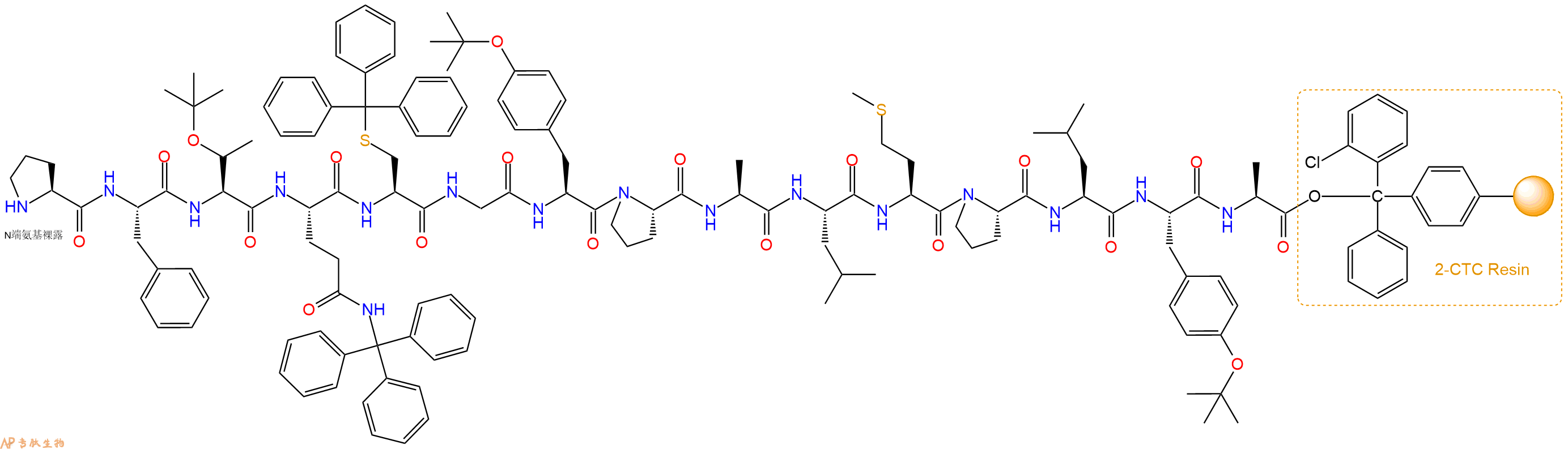 H2N-Phe-Thr(tBu)-Gln(Trt)-Cys(Trt)-Gly-Tyr(tBu)-Pro-Ala-Leu-Met-Pro-Leu-Tyr(tBu)-Ala-CTC Resin