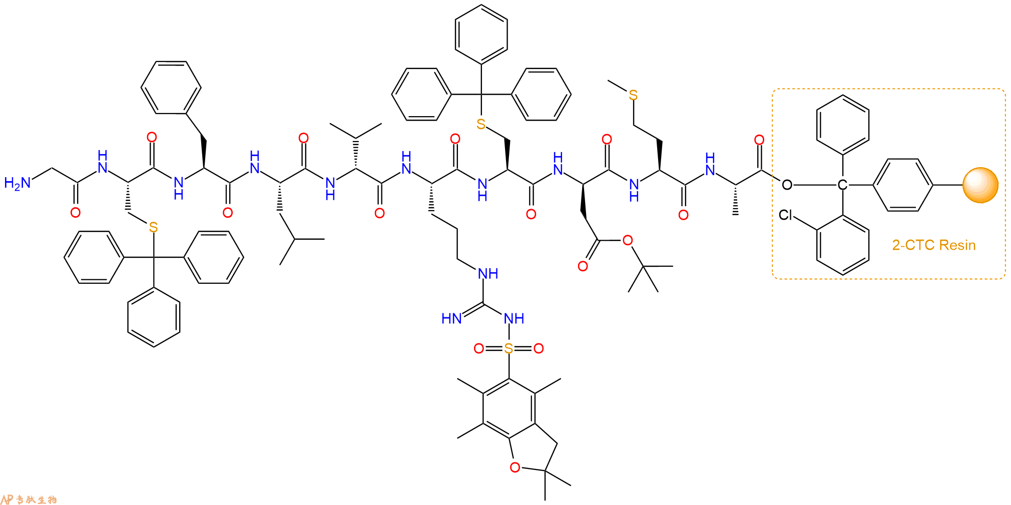 H2N-Arg(Pbf)-Cys(Trt)-DAsp(OtBu)-Met-Ala-CTC Resin