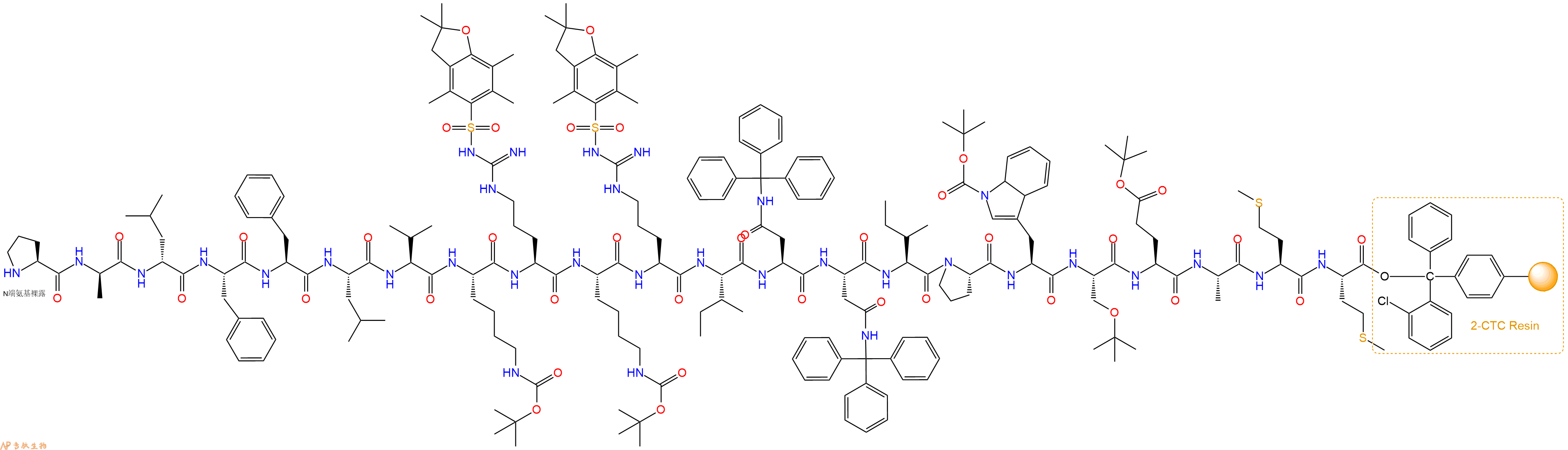 H2N-Phe-Leu-Val-Lys(Boc)-Arg(Pbf)-Lys(Boc)-Arg(Pbf)-Ile-Asn(Trt)-Asn(Trt)-Ile-Pro-Trp(Boc)-Ser(tBu)-Glu(OtBu)-Ala-Met-Met-CTC Resin
