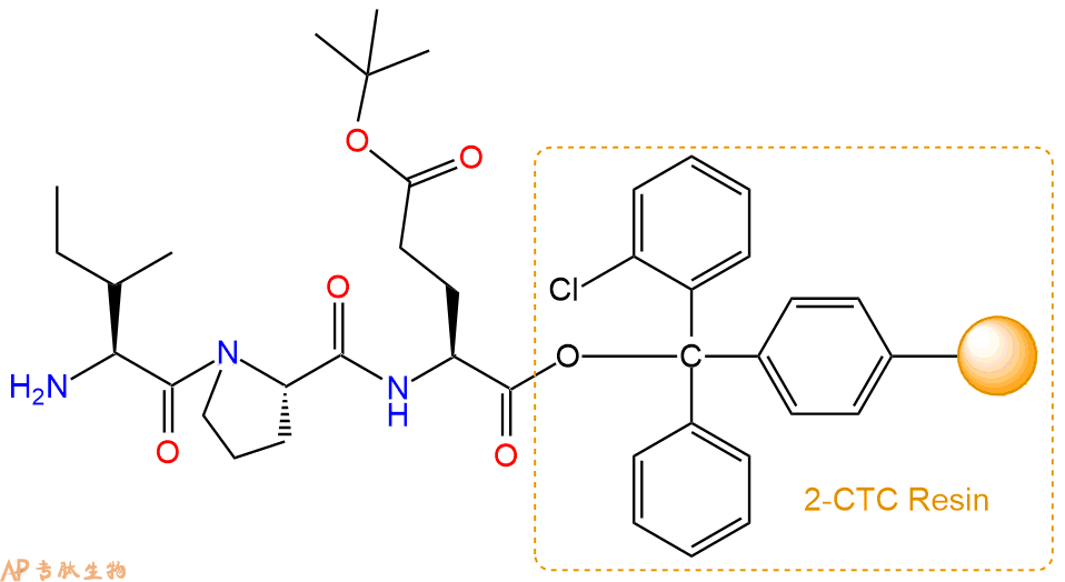 最后再经过步骤二得到 H2N-Ile-Pro-Glu(OtBu)-CTC Resin,结构如下: