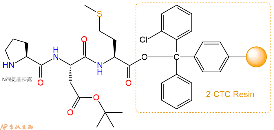 最后再经过步骤二得到 H2N-Pro-Asp(OtBu)-Met-CTC Resin,结构如下: