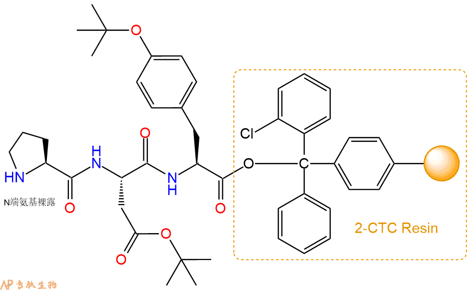 最后再经过步骤二得到 H2N-Pro-Asp(OtBu)-Tyr(tBu)-CTC Resin,结构如下: