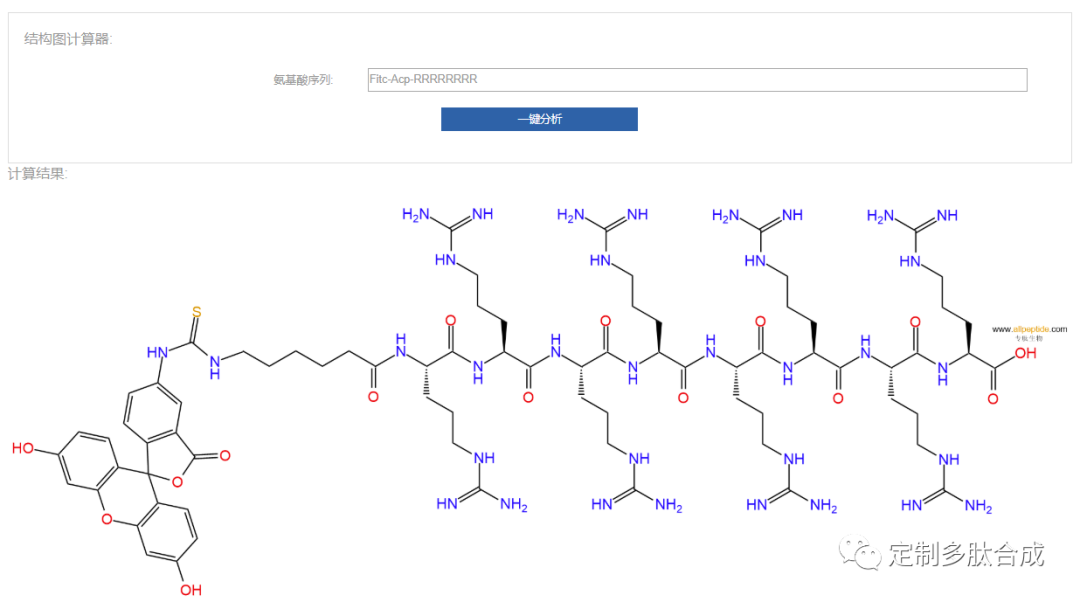 2、例如计算FITC标记的R8结构,输入Fitc-Acp-RRRRRRRR。