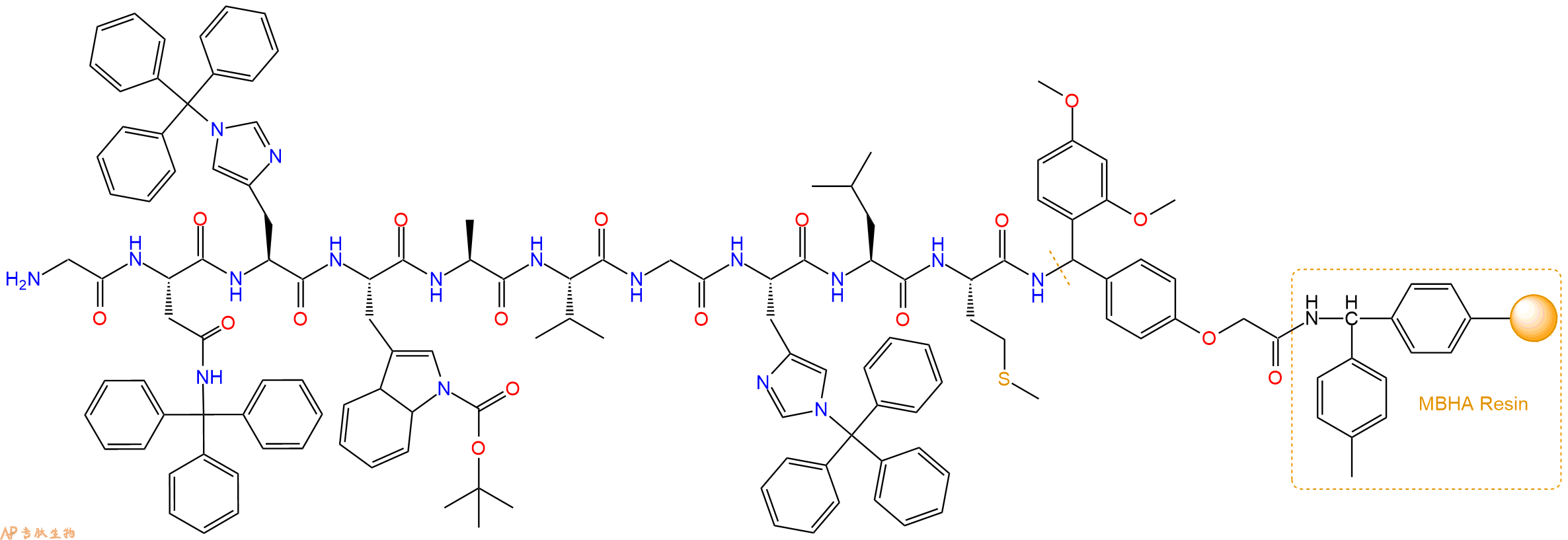Fmoc-Gly-Asn(Trt)-His(Trt)-Trp(Boc)-Ala-Val-Gly-His(Trt)-Leu-Met-Linker-MBHA Resin