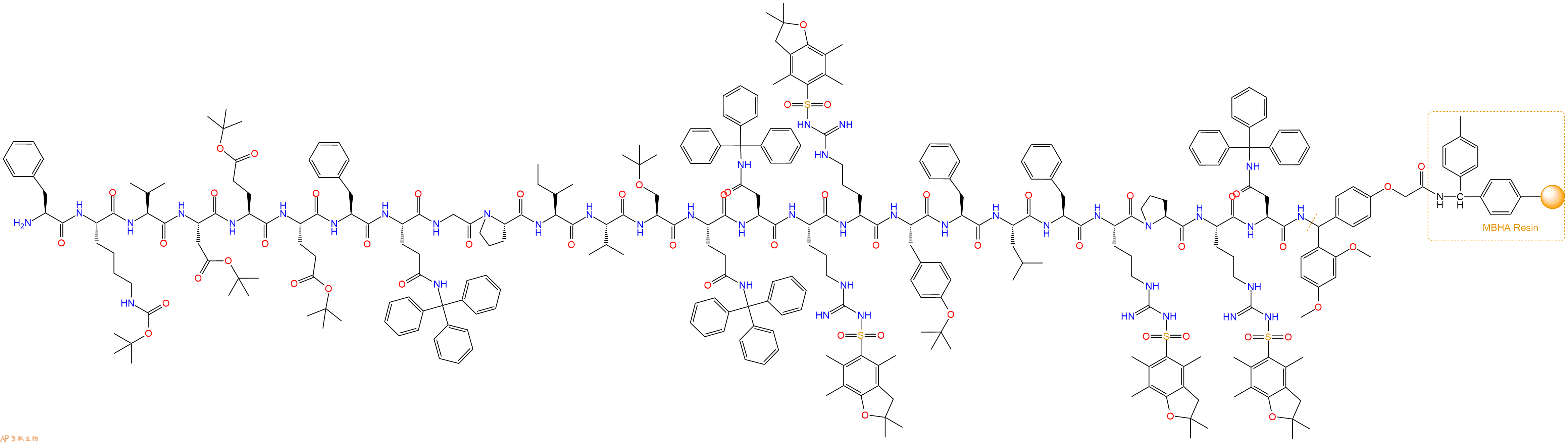 H2N-Phe-Arg(Pbf)-Pro-Arg(Pbf)-Asn(Trt)-Linker-MBHA Resin