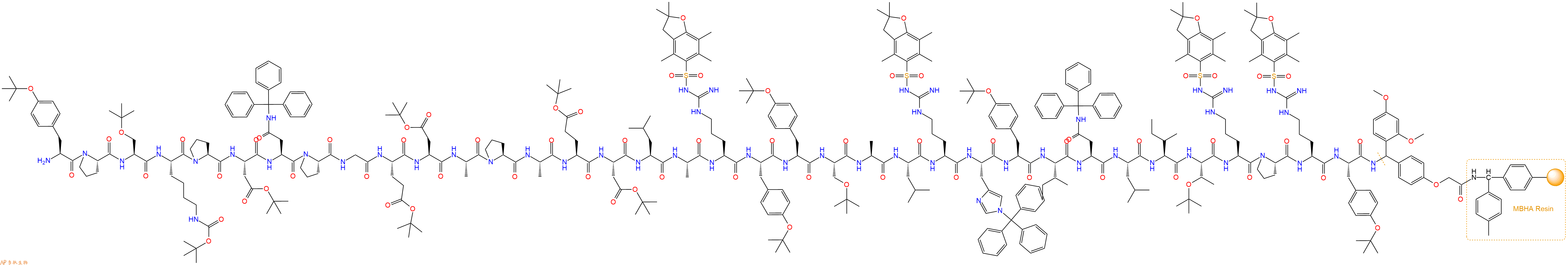 H2N-Lys(Boc)-Pro-Asp(OtBu)-Asn(Trt)-Pro-Gly-Glu(OtBu)-Asp(OtBu)-Ala-Pro-Ala-Glu(OtBu)-Asp(OtBu)-Leu-Ala-Arg(Pbf)-Tyr(tBu)-Tyr(tBu)-Ser(tBu)-Ala-Leu-Arg(Pbf)-His(Trt)-Tyr(tBu)-Ile-Asn(Trt)-Leu-Ile-Thr(tBu)-Arg(Pbf)-Pro-Arg(Pbf)-Tyr(tBu)-Linker-MBHA Resin