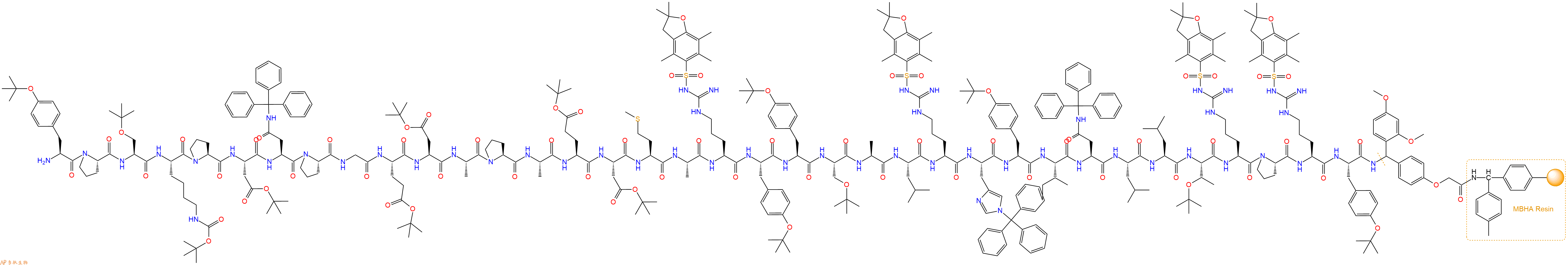 H2N-Arg(Pbf)-Pro-Arg(Pbf)-Tyr(tBu)-Linker-MBHA Resin