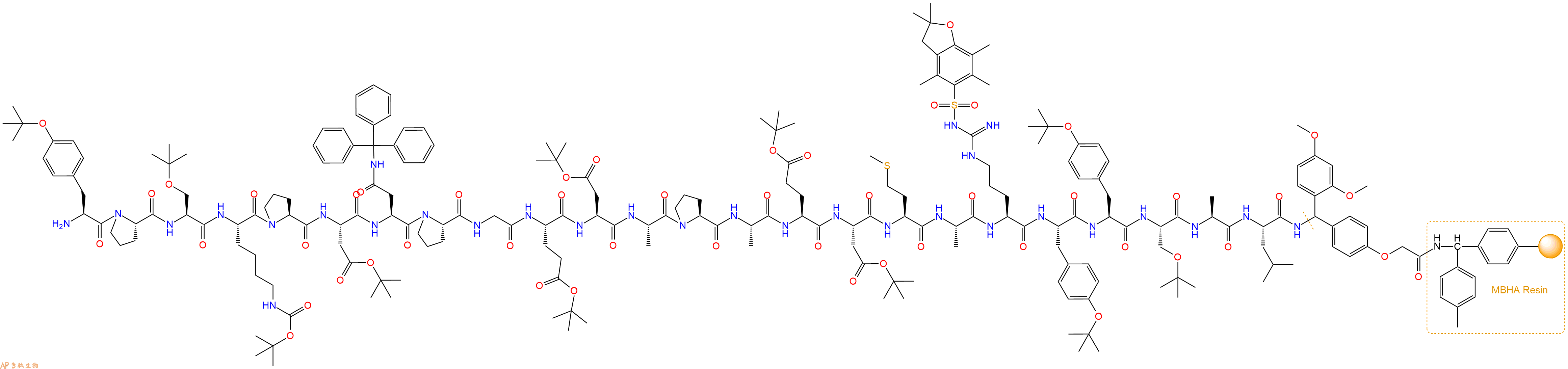 Fmoc-Pro-Gly-Glu(OtBu)-Asp(OtBu)-Ala-Pro-Ala-Glu(OtBu)-Asp(OtBu)-Met-Ala-Arg(Pbf)-Tyr(tBu)-Tyr(tBu)-Ser(tBu)-Ala-Leu-Linker-MBHA Resin