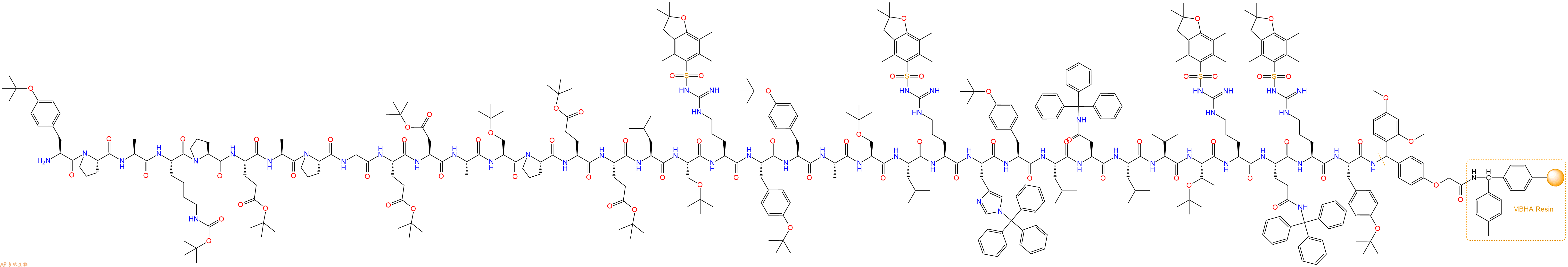 Fmoc-Pro-Ala-Lys(Boc)-Pro-Glu(OtBu)-Ala-Pro-Gly-Glu(OtBu)-Asp(OtBu)-Ala-Ser(tBu)-Pro-Glu(OtBu)-Glu(OtBu)-Leu-Ser(tBu)-Arg(Pbf)-Tyr(tBu)-Tyr(tBu)-Ala-Ser(tBu)-Leu-Arg(Pbf)-His(Trt)-Tyr(tBu)-Leu-Asn(Trt)-Leu-Val-Thr(tBu)-Arg(Pbf)-Gln(Trt)-Arg(Pbf)-Tyr(tBu)-Linker-MBHA Resin
