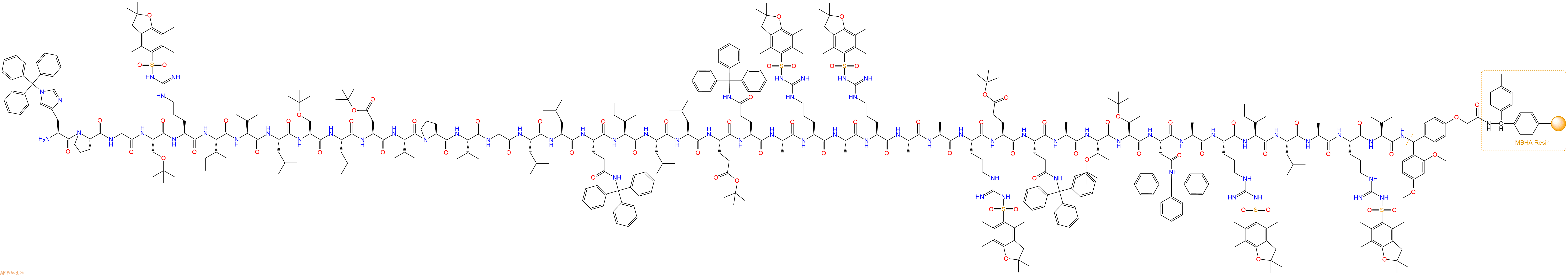 Fmoc-Leu-Asp(OtBu)-Val-Pro-Ile-Gly-Leu-Leu-Gln(Trt)-Ile-Leu-Leu-Glu(OtBu)-Gln(Trt)-Ala-Arg(Pbf)-Ala-Arg(Pbf)-Ala-Ala-Arg(Pbf)-Glu(OtBu)-Gln(Trt)-Ala-Thr(tBu)-Thr(tBu)-Asn(Trt)-Ala-Arg(Pbf)-Ile-Leu-Ala-Arg(Pbf)-Val-Linker-MBHA Resin