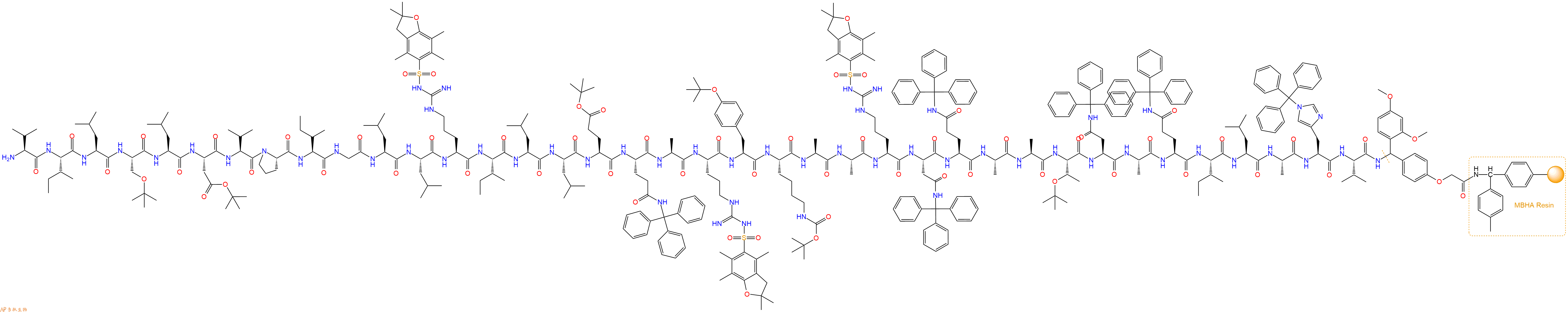 Fmoc-Gln(Trt)-Ala-Arg(Pbf)-Tyr(tBu)-Lys(Boc)-Ala-Ala-Arg(Pbf)-Asn(Trt)-Gln(Trt)-Ala-Ala-Thr(tBu)-Asn(Trt)-Ala-Gln(Trt)-Ile-Leu-Ala-His(Trt)-Val-Linker-MBHA Resin