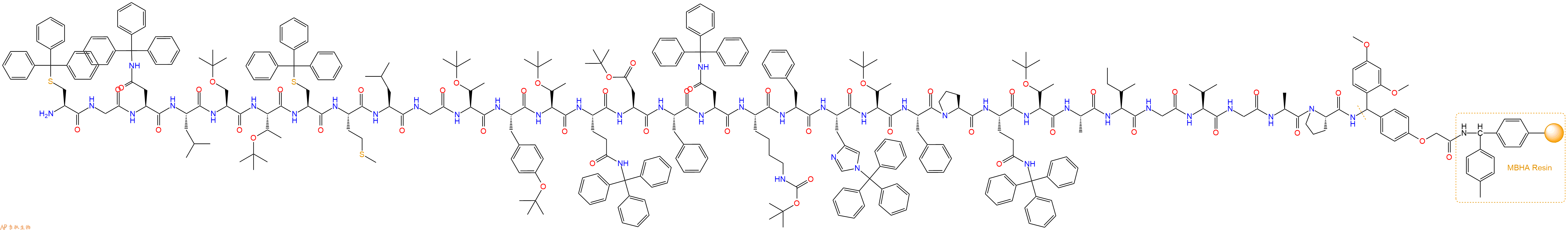 H2N-Phe-Asn(Trt)-Lys(Boc)-Phe-His(Trt)-Thr(tBu)-Phe-Pro-Gln(Trt)-Thr(tBu)-Ala-Ile-Gly-Val-Gly-Ala-Pro-Linker-MBHA Resin