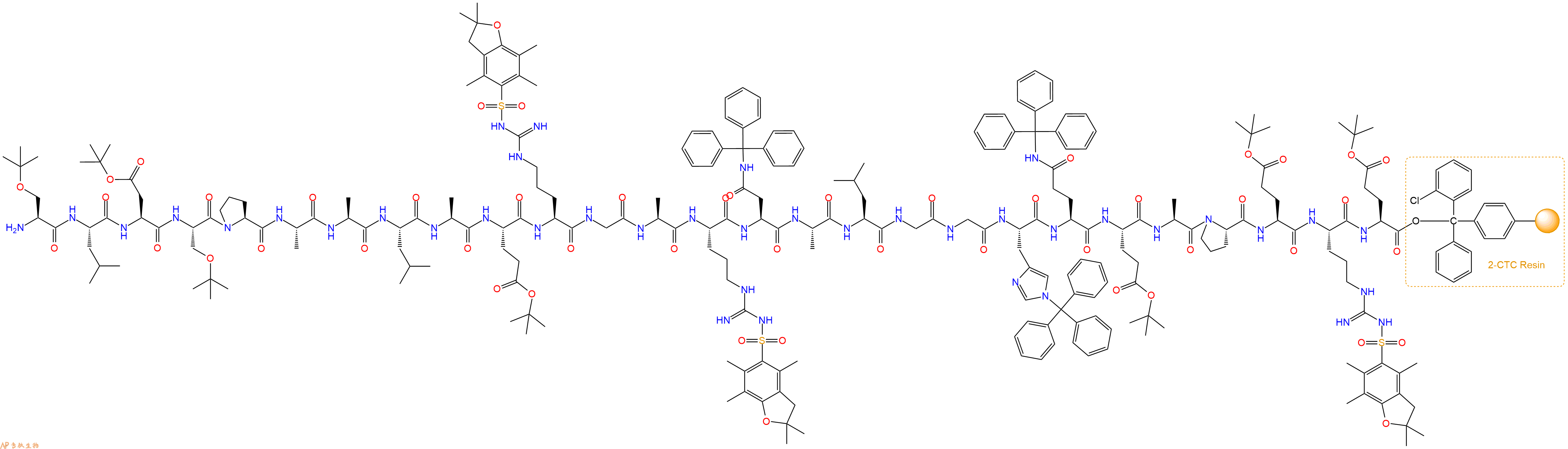 H2N-Pro-Ala-Ala-Leu-Ala-Glu(OtBu)-Arg(Pbf)-Gly-Ala-Arg(Pbf)-Asn(Trt)-Ala-Leu-Gly-Gly-His(Trt)-Gln(Trt)-Glu(OtBu)-Ala-Pro-Glu(OtBu)-Arg(Pbf)-Glu(OtBu)-CTC Resin