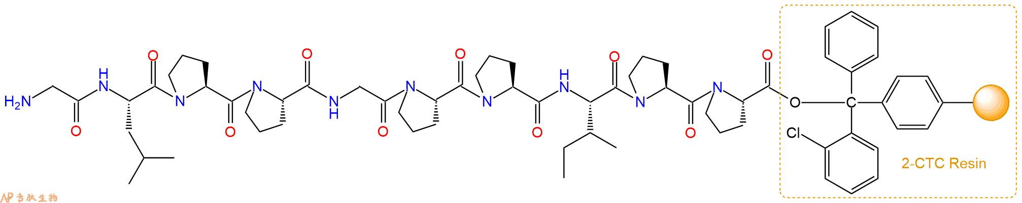 最后再经过步骤二得到 H2N-Gly-Leu-Pro-Pro-Gly-Pro-Pro-Ile-Pro-Pro-CTC Resin,结构如下: