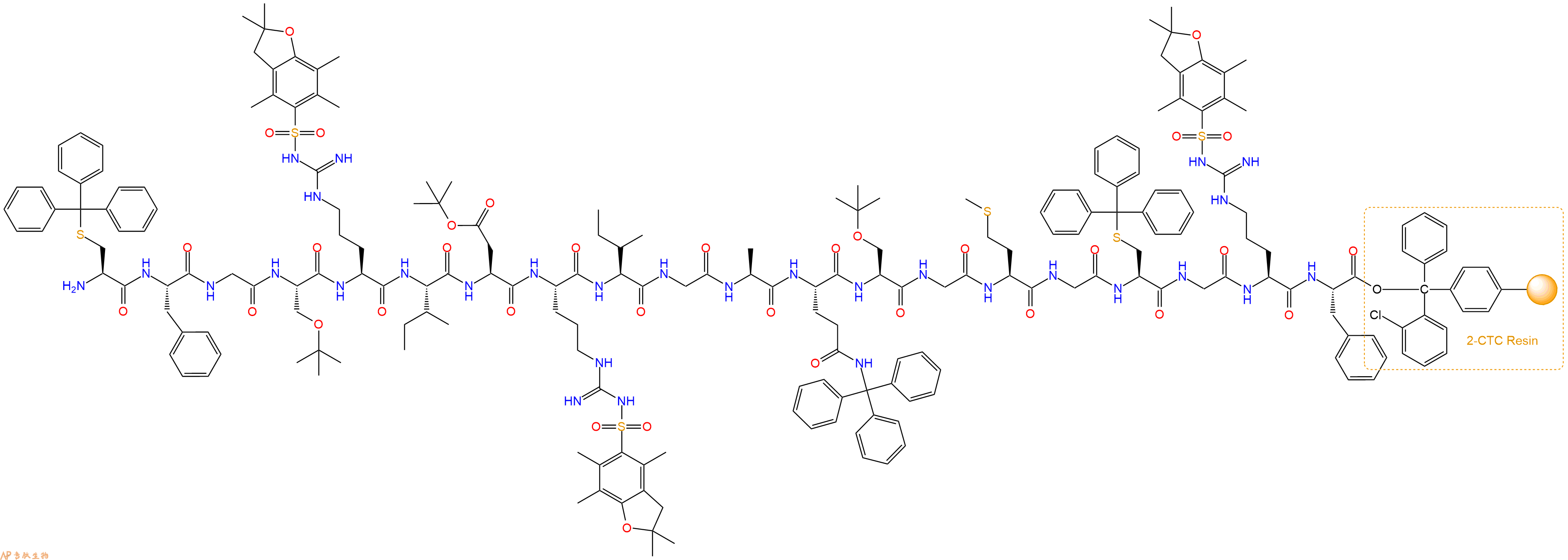 H2N-Ser(tBu)-Arg(Pbf)-Ile-Asp(OtBu)-Arg(Pbf)-Ile-Gly-Ala-Gln(Trt)-Ser(tBu)-Gly-Met-Gly-Cys(Trt)-Gly-Arg(Pbf)-Phe-CTC Resin