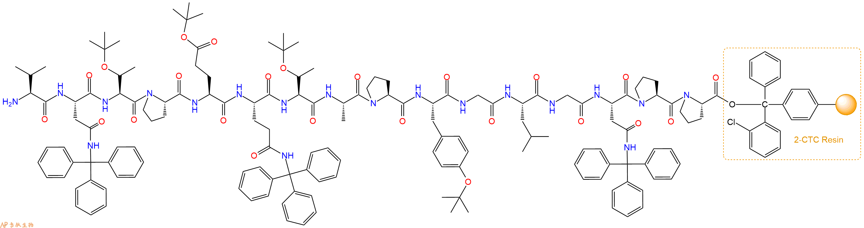 Fmoc-Val-Asn(Trt)-Thr(tBu)-Pro-Glu(OtBu)-Gln(Trt)-Thr(tBu)-Ala-Pro-Tyr(tBu)-Gly-Leu-Gly-Asn(Trt)-Pro-Pro-CTC Resin