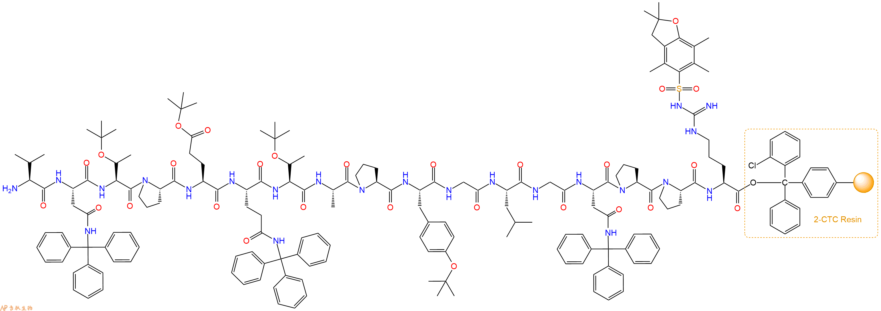 H2N-Asn(Trt)-Thr(tBu)-Pro-Glu(OtBu)-Gln(Trt)-Thr(tBu)-Ala-Pro-Tyr(tBu)-Gly-Leu-Gly-Asn(Trt)-Pro-Pro-Arg(Pbf)-CTC Resin