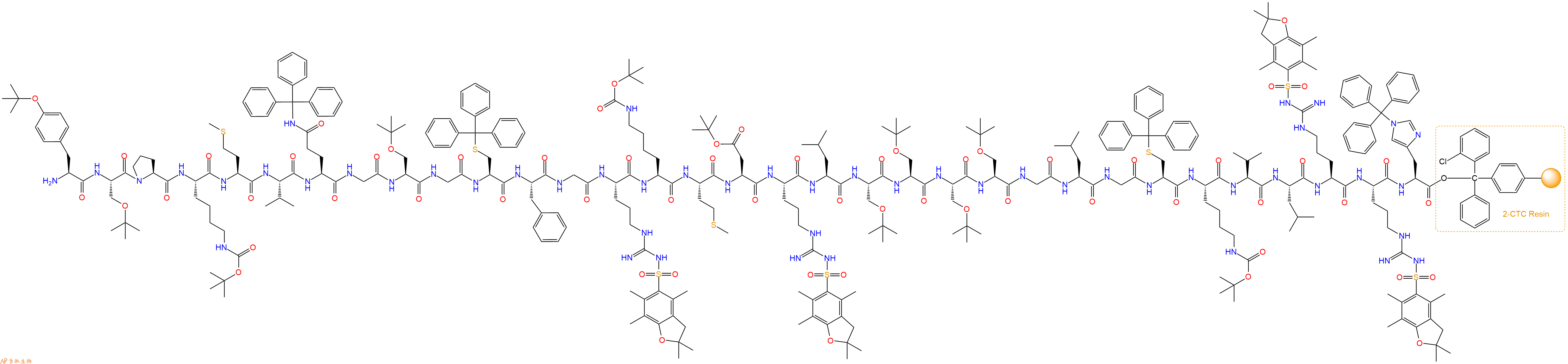 Fmoc-Lys(Boc)-Met-Asp(OtBu)-Arg(Pbf)-Leu-Ser(tBu)-Ser(tBu)-Ser(tBu)-Ser(tBu)-Gly-Leu-Gly-Cys(Trt)-Lys(Boc)-Val-Leu-Arg(Pbf)-Arg(Pbf)-His(Trt)-CTC Resin