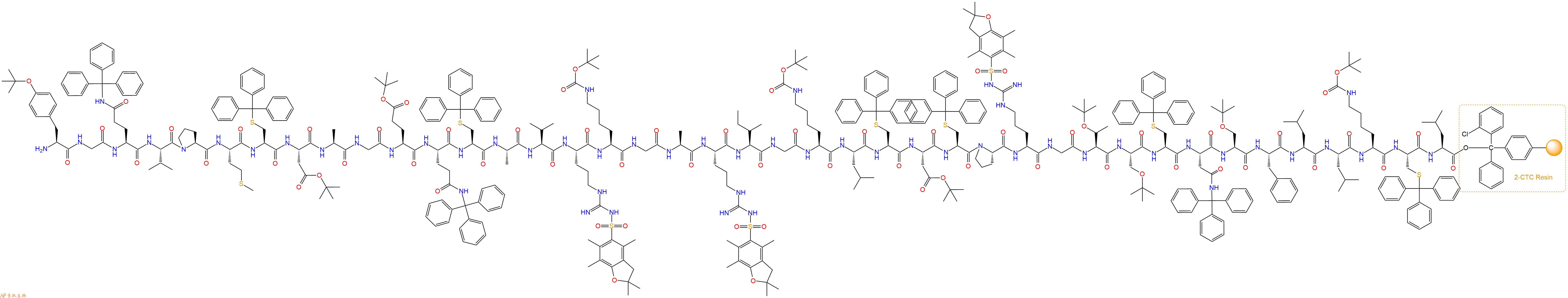 H2N-Ala-Val-Arg(Pbf)-Lys(Boc)-Gly-Ala-Arg(Pbf)-Ile-Gly-Lys(Boc)-Leu-Cys(Trt)-Asp(OtBu)-Cys(Trt)-Pro-Arg(Pbf)-Gly-Thr(tBu)-Ser(tBu)-Cys(Trt)-Asn(Trt)-Ser(tBu)-Phe-Leu-Leu-Lys(Boc)-Cys(Trt)-Leu-CTC Resin