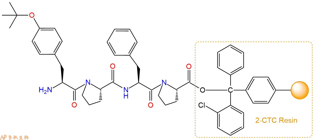 最后再经过步骤二得到 H2N-Tyr(tBu)-Pro-Phe-Pro-CTC Resin,结构如下: